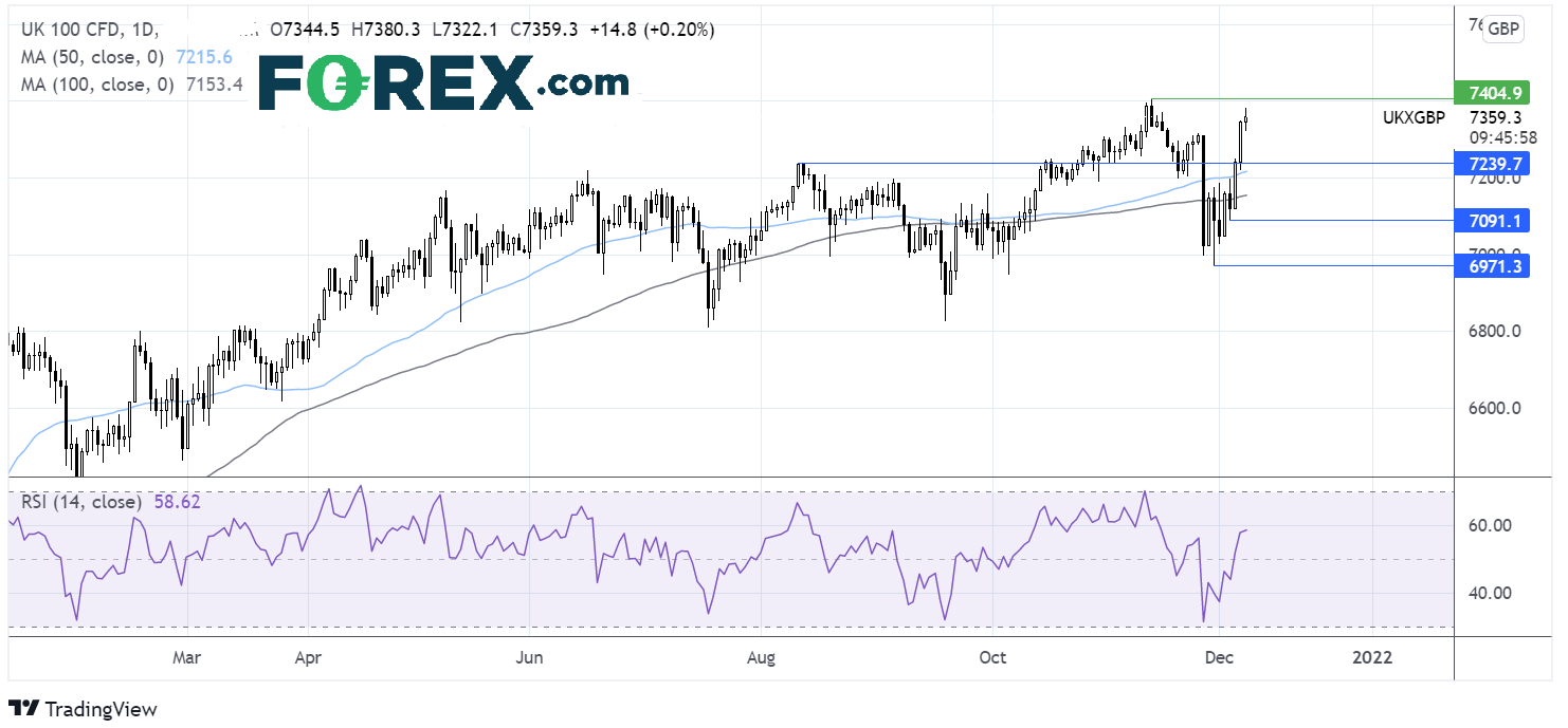 随着辉瑞公司(Pfizer)传出乐观消息,称该公司第三剂疫苗可以中和奥密克戎变种,同时也得益于英镑下挫,该备受关注的国际股指与全球股市一道走高。但若英国采取封锁措施,英国股指或承压加剧。