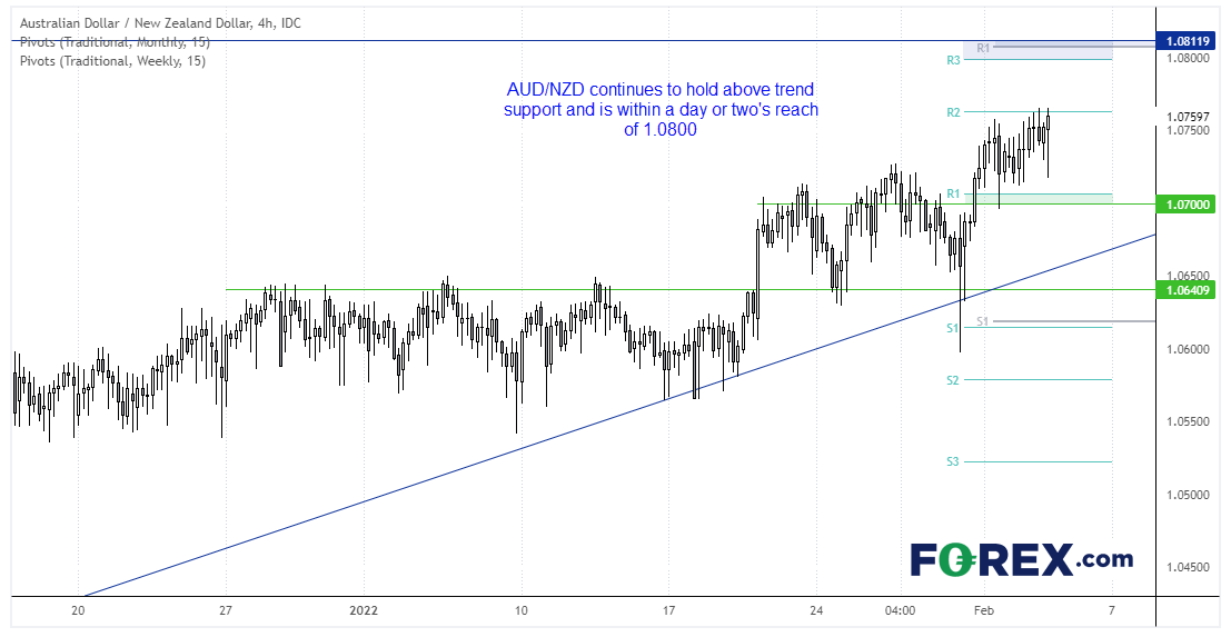 澳大利亚交易者今天将迎来PMI、住房信贷与贸易帐,这些数据或许帮助澳元/纽元到达我们的目标1.0800附近。该交叉盘守在趋势线支撑上方,系列下影线也确认了1.0700附近的支撑地位。所以,只要守住这些低点,我们继续上看1.0800目标,其落在周图第三阻力中枢与月图第一阻力中枢附近。