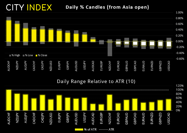 其他货币方面,我们能察觉到确认股市走势的轻微风险偏好基调,纽元和澳元成为隔夜最强货币,而瑞郎和日元表现最弱。我们也在关注瑞郎/日元,货币对近期持续回调后有可能在12月高点附近形成低点。