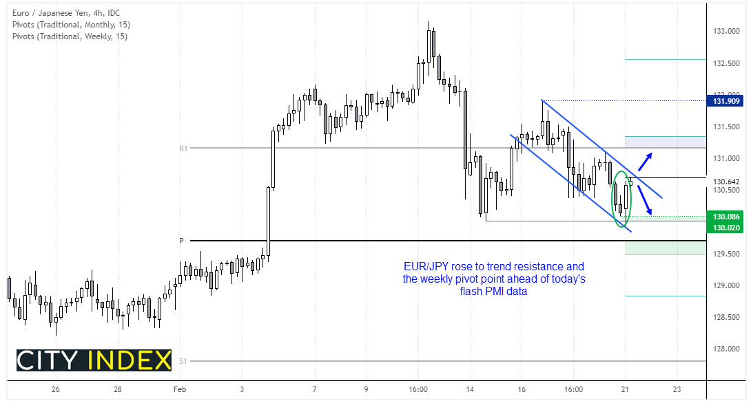 PMI初值揭晓前,欧元/日元反弹攻向阻力位