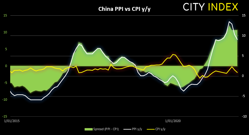 中国生产者价格指数(PPI)自10.3%降至6个月低点9.1%,消费者价格指数(CPI)回落至4个月低点0.9%。数据不仅说明中国通胀水平仍明显低于西方国家,同时也显示出中国通胀走势与美欧继续飙升的物价并不同步。中国经济增长或面临阻力,政府可能出台进一步刺激措施来提供支持。