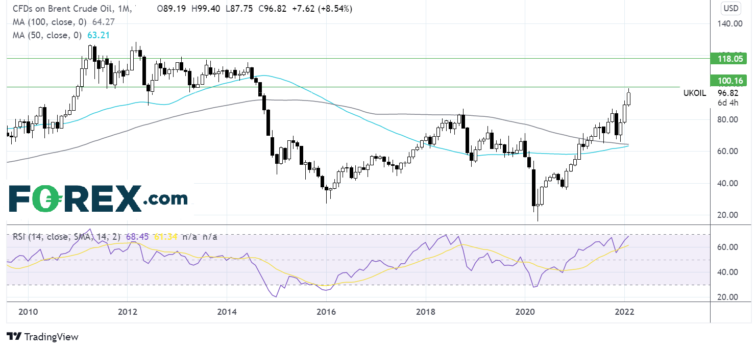 即便如此,德国总理Olaf Scholz还是中断了Nord Stream 2输油管道项目的认证程序。该管道从俄罗斯直通德国,之前启动此项目是了帮助缓解欧洲的能源危机。市场认为,欧洲对俄罗斯的抗击最多也只能做到这个程度。普京表示,俄罗斯要持续不间断地供应能源。此番言论帮助油价自时段高点回落,但原油市场当然也抱以谨慎的态度,油价当天还是上涨2%。