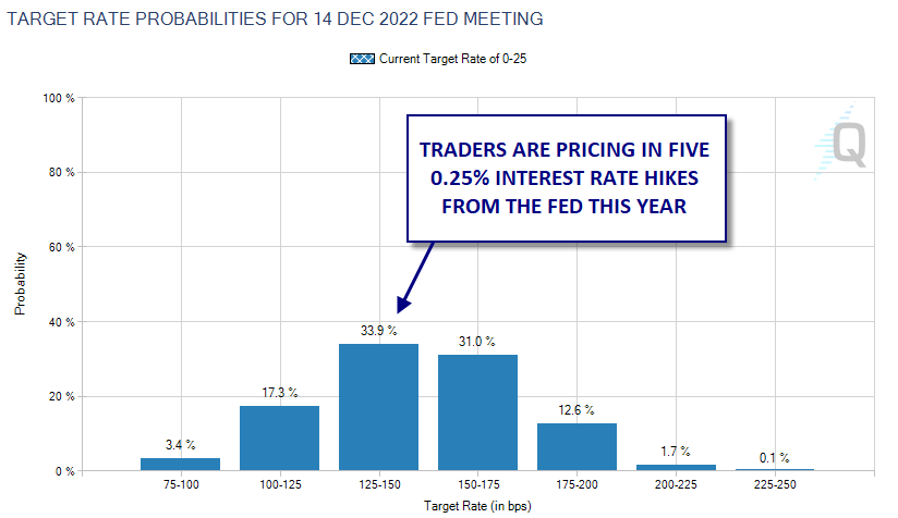 换言之,距离华盛顿特区近5000英里的俄乌战争对美国经济的直接影响微乎其微,所以也不会妨碍美联储本月加息。不过,市场的避险行动也显著降低了以加息50个基点拉开升息周期的可能性。