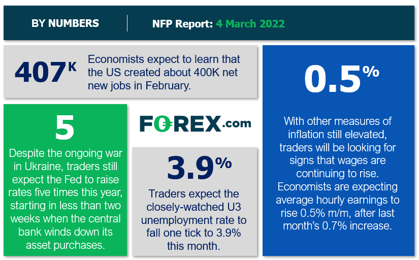 上月就业报告远强于预期,交易者基于Omicron变异病毒退却、企业继续积极招聘而期待又一份稳健的美国劳动力市场报告。事实上,经济学家预期美国2月净新增就业40.7万人,而物价压力的关键衡量指标平均每小时收入月率上涨0.5%。