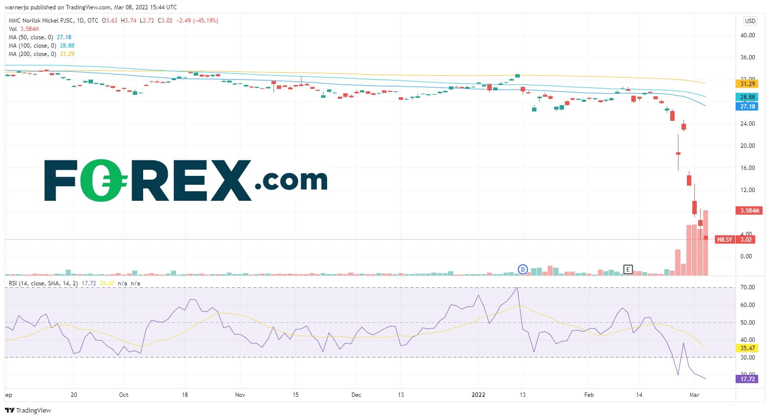 与此同时,投资者担心Norilsk Nickel公司被切断与国际市场的联系,无法将其产品卖到俄罗斯影响范围以外的地区,所以抛售其股票。
