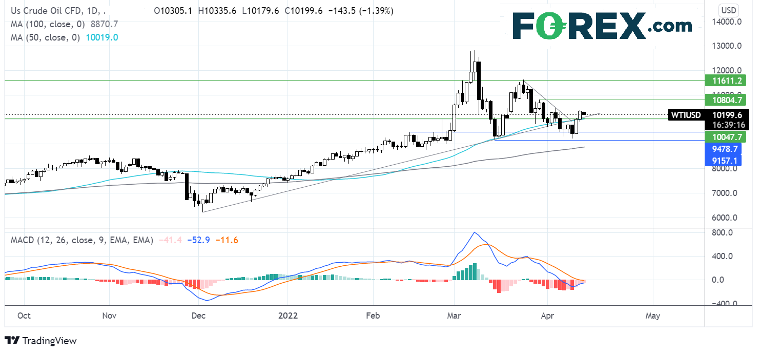 俄罗斯原油供应进一步减少,叠加上海放松疫情管控,提升需求前景,而OPEC+的供应仍未达到上调后的产出配额,也就是说,油价可能暂时守住100上方。