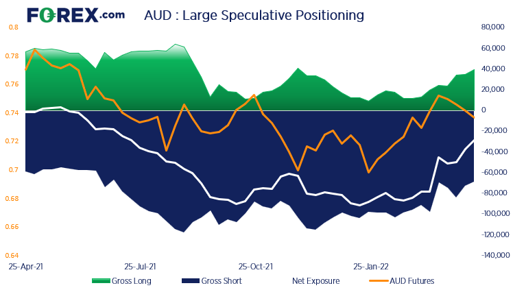 大型投机者过去3周增持1.6万张多头合约,其中有4900张为上周增持。不过,增持行为真正的起始时间是在3月初。过去2周空头减持,将净空头持仓削减至7月以来最低水平。综合来看,虽然价格下跌,期货交易员正在增持澳元多头合约。