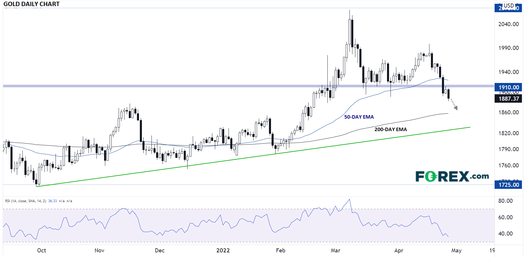 下档需要关注的区域包括200天指数移动均线1860附近和上升趋势线1825附近,多头要想扭转短线下跌趋势,可能需要收复关键的前支撑/阻力区域1910附近。