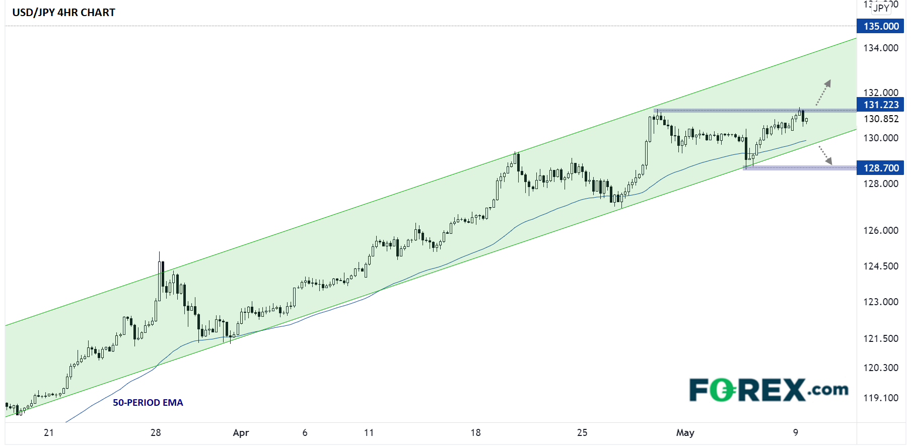 如果美国通胀报告比预期火热(指向双方货币政策进一步广泛背离),该货币对可能在清晰的短线上涨通道内扩大涨势。而如果通胀报告疲弱,或打破前述通道。但要转变短线上涨倾向至中性,则可能需要下破上周低点128.60附近。