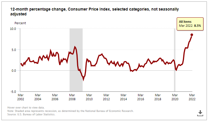 消费者物价指数(CPI)就是在这样的背景下将在周三揭晓。交易者和经济学家的预期表面月率和年率双双下降:前者上涨0.2%,远低于4月的1.2%;后者自上月创下的40年高点8.5%下降至8.1%。如果结果确实如此,则可能是疫情造成深度衰退以来年率第一次幅度可观的下滑。