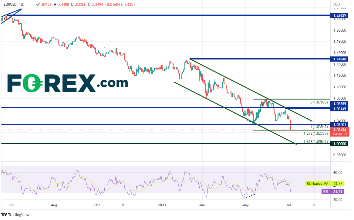 欧元/美元跌跌不休,到现在跌势已绵延逾一年,接下来是否到达平价?如果到达平价,又有什么力量可以阻止其跌破平价?相比较美国目前享有的低失业率优势,欧洲央行面临双重困境,不仅要将利率上调至正值,还要维持经济发展,防止其滑入衰退。