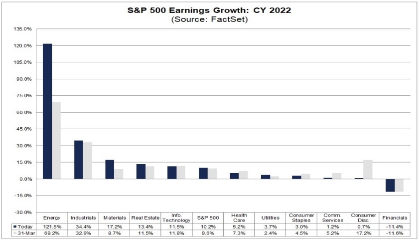 华尔街暂时较为看好三季度,认为标普500指数成份股平均增长速度将在三季度和四季度开始再度加速,表现好于二季度,2022年整体画面较为美好。然而,市场的看法很容易为企业二季度财报季中对前景的看法所改变。当前的乐观看法可能遭到经济前景不确定的考验。