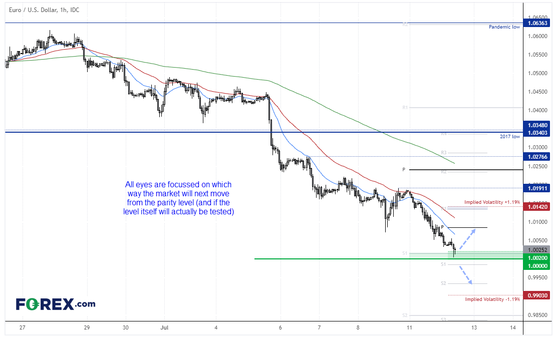 欧元/美元距平价仅一步之遥,密切留意方向的选择- 嘉盛官网