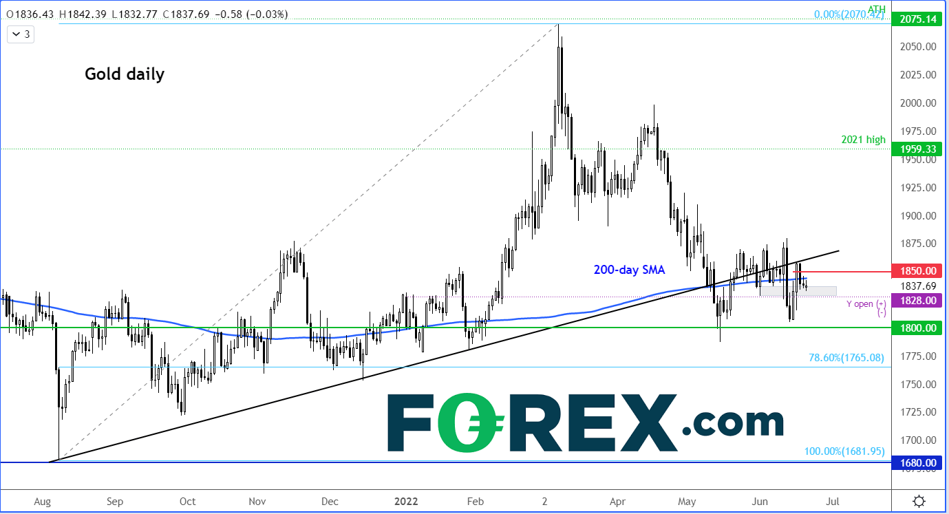 我们已经看到,黄金未能受益于美元过去几天的略显疲态,截至撰写本文时,金价受制于1840美元下方。