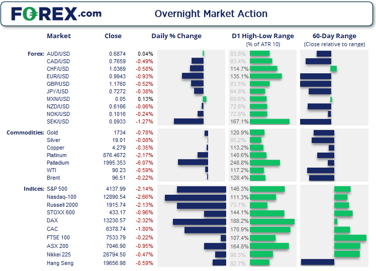 隔夜时段走势震荡,其中美元继续飚升而全球股市与大宗商品下跌。投资者日渐担心,鲍威尔在大会上将发表强硬评论的同时警告,未来几个月可能处境艰难(并引发经济衰退忧虑)。美联储官员的公开评论越来越趋于强硬,在大会召开前的看法似乎趋同。美联储通常会在这样的大会上宣布重要公告。
