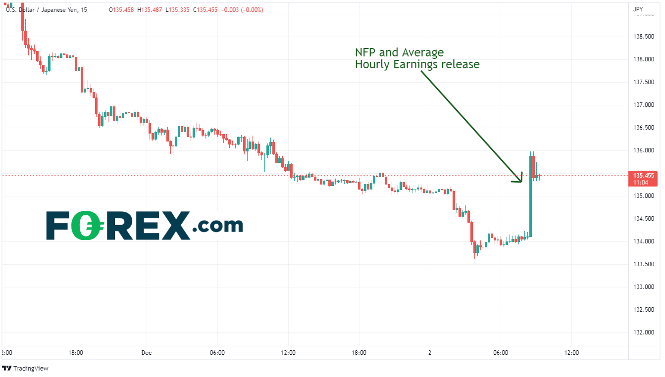 美元市场似乎认为有加息75个基点的可能性。在数据发布后,美元/日元立即从134.10跳涨至135.98,因为交易员担心工资可能会蔓延至通胀,因此,美联储可能不得不在12月的利率决策会议上改变立场。