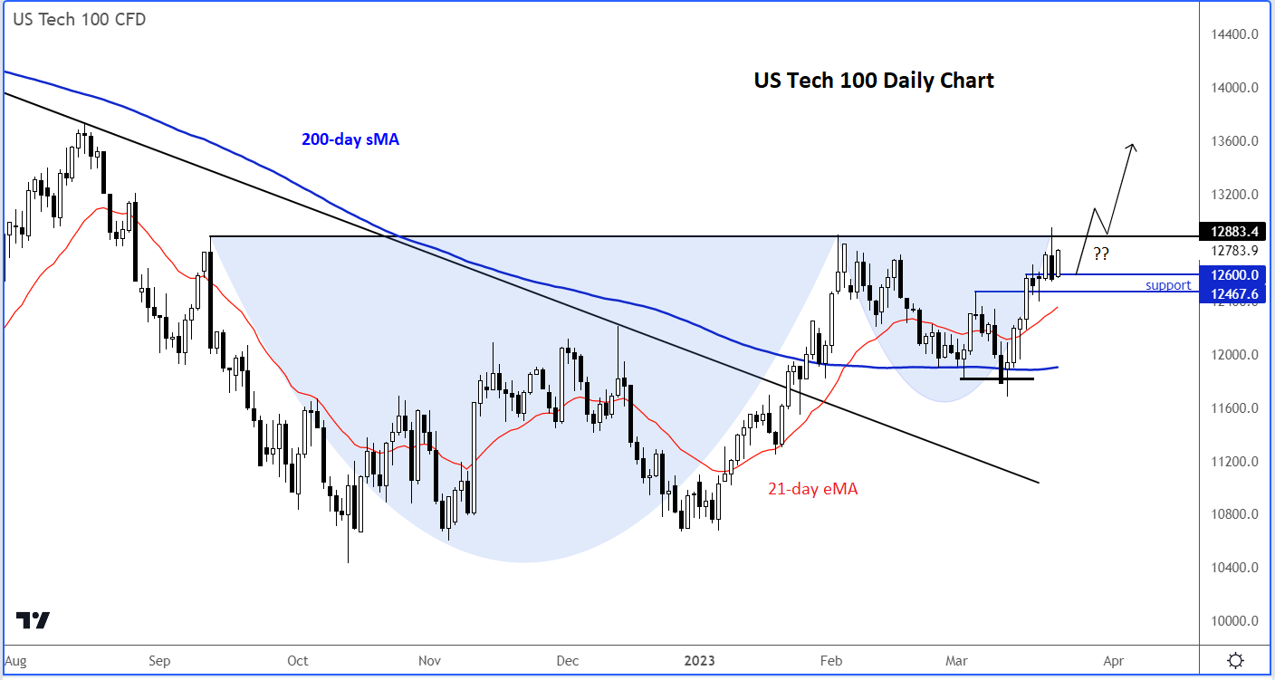 因此,只要多头守住12600-12450附近的关键支撑位,指数仍有可能向上突破12885-12900阻力区。如果发生这种情况,请注意在该区域上方的后续技术性买入。