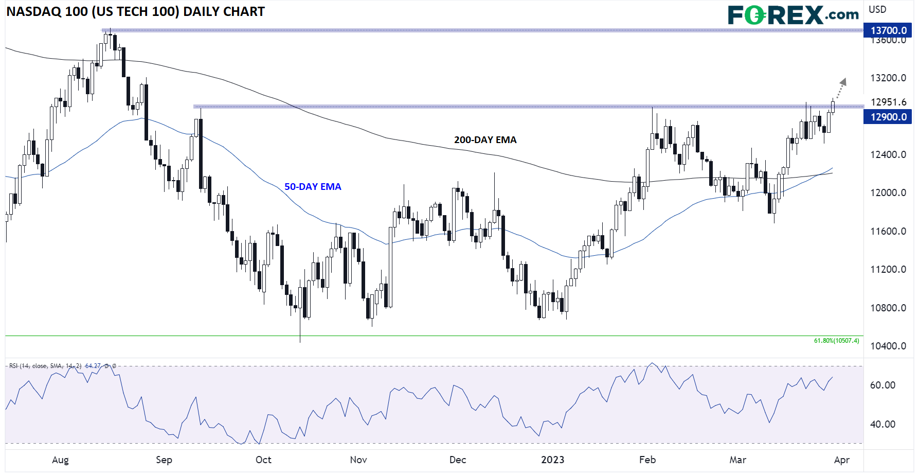 当下只有反转回落至本周低点12,500附近才可能瓦解纳斯达克100指数近期的涨势。