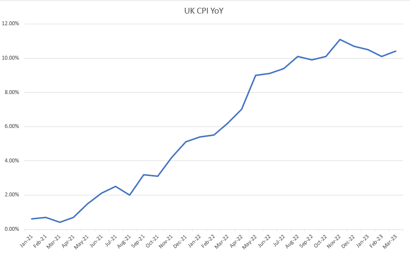 自2021年1月以来的英国整体CPI