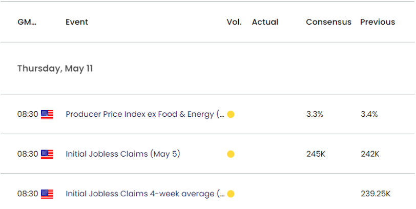 即将发布的美国数据可能会继续影响欧元/美元,因为预计生产者价格指数(PPI)将显示工厂出货价格进一步下降,4月核心指数预计将从前一个月的年化3.4%收窄至3.3%。
