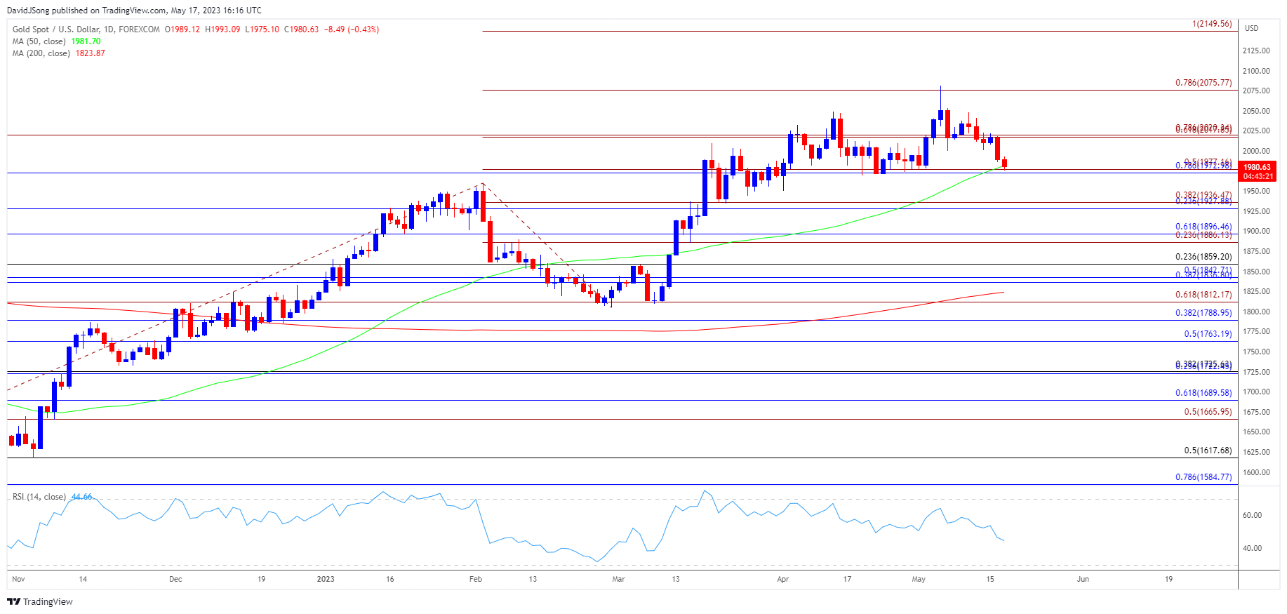 - 突破/收盘低于1973美元(78.6%斐波那契回撤位)至1977美元(50%斐波那契延伸位)区域,则看向4月低点(1950美元),接下来值得关注的区域在1928美元(23.6%斐波那契回撤位)至1937美元(38.2%斐波那契延伸位)。