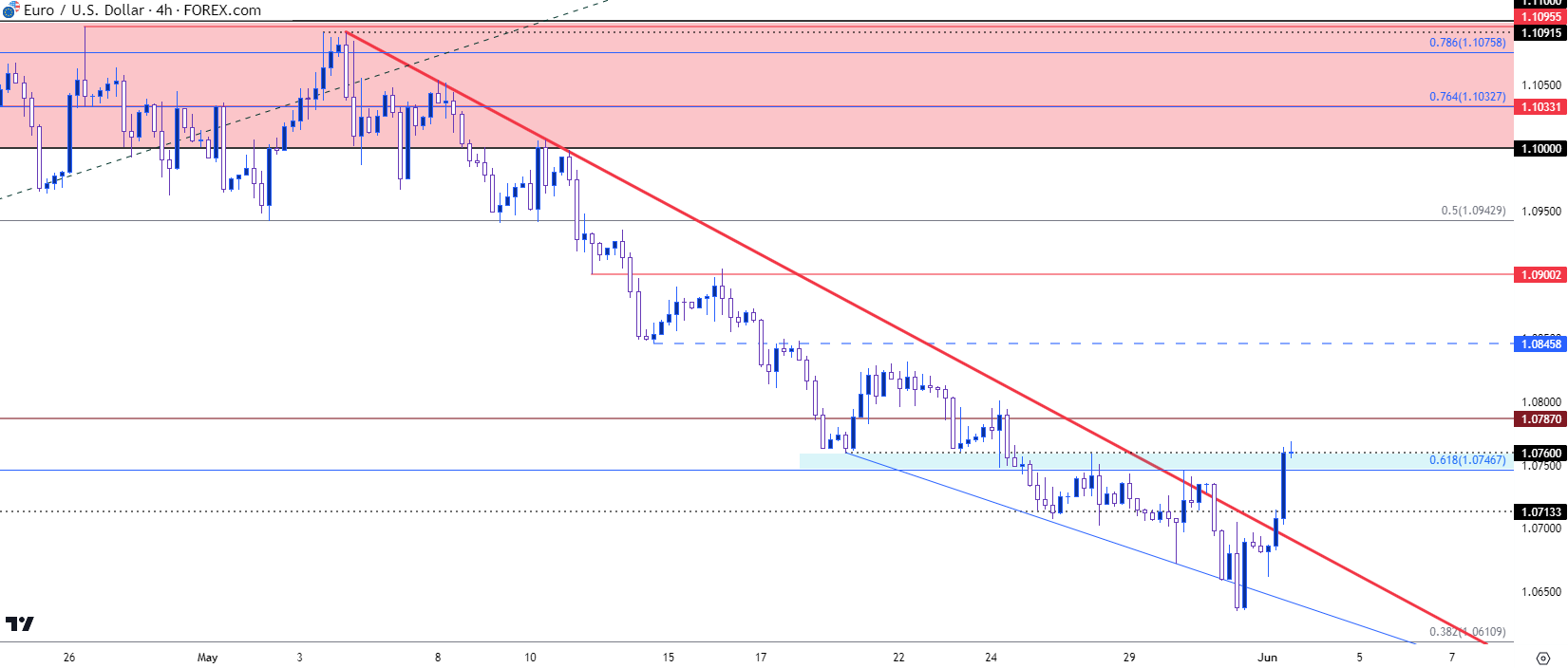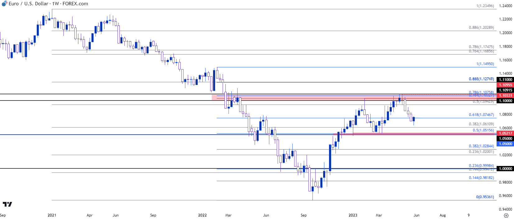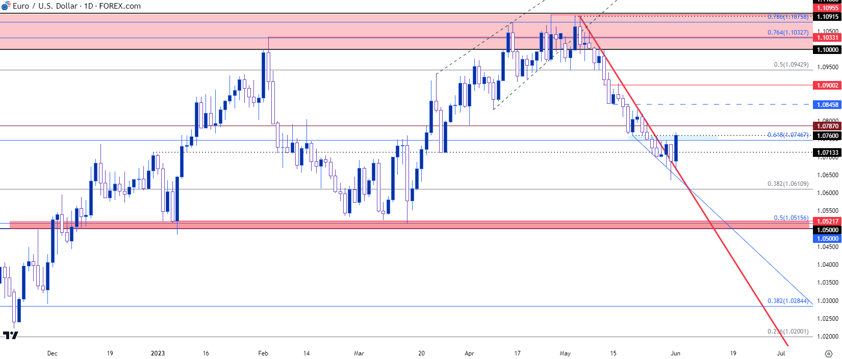 图表由James Stanley绘制,Tradingview上的欧元/美元